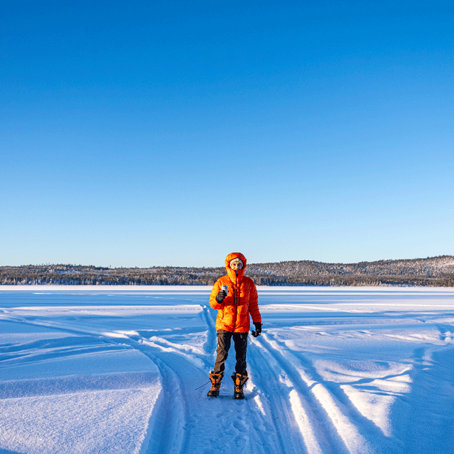 Nous avons traversé des lacs gelés, des rivières et de vastes forêts de pins, avant de nous arrêter au bord d’un lac pour déguster une spécialité locale en compagnie de notre guide, Malou.
